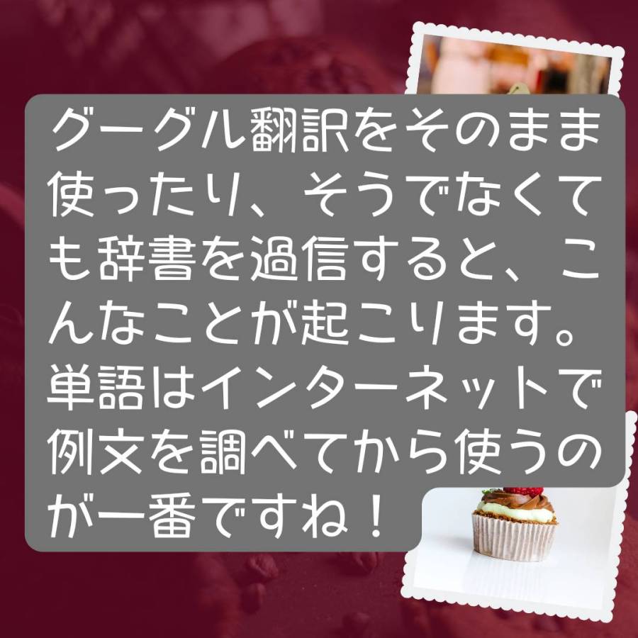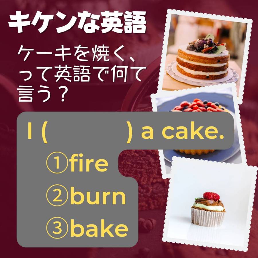 キケンな英語。「ケーキを焼く」って、英語で何て言う? 投稿者:Go Global2023年1月15日カテゴリー:英語の豆知識タグ:オンライン英会話、オーストラリア、ネイティブ、ラジオ英会話、稲毛海岸、英語、英語スピーチ、英検、英会話、千葉、多聴多読、海浜幕張 Goグローバルの鳥居です。 Google翻訳の落とし穴。皆さんは、こんな経験ありませんか? 共有: X で共有 (新しいウィンドウで開きます) X Facebook で共有 (新しいウィンドウで開きます) Facebook いいね 読み込み中… 関連