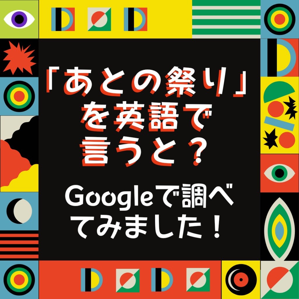 「あとの祭り」をGoogle検索すると… 投稿者:Go Global2023年1月21日カテゴリー:英語の豆知識タグ:オンライン英会話、オーストラリア、ネイティブ、ラジオ英会話、稲毛海岸、英語、英語スピーチ、英検、英会話、千葉、多聴多読、海浜幕張 Goグローバルの鳥居です。Google検索のわな、その2。 共有: X で共有 (新しいウィンドウで開きます) X Facebook で共有 (新しいウィンドウで開きます) Facebook いいね 読み込み中… 関連